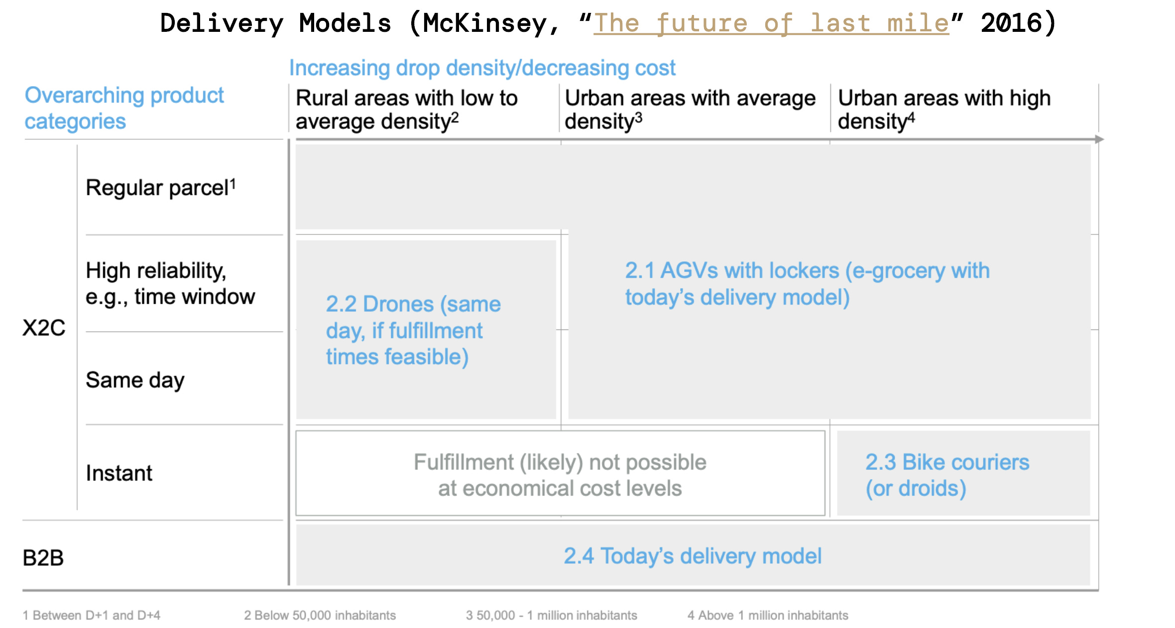 McKinsey’s thorough report on Parcel Delivery, although from 2016, has some great points on last-mile innovations even if it does miss how quickly e-commerce would grow due to the pandemic.
