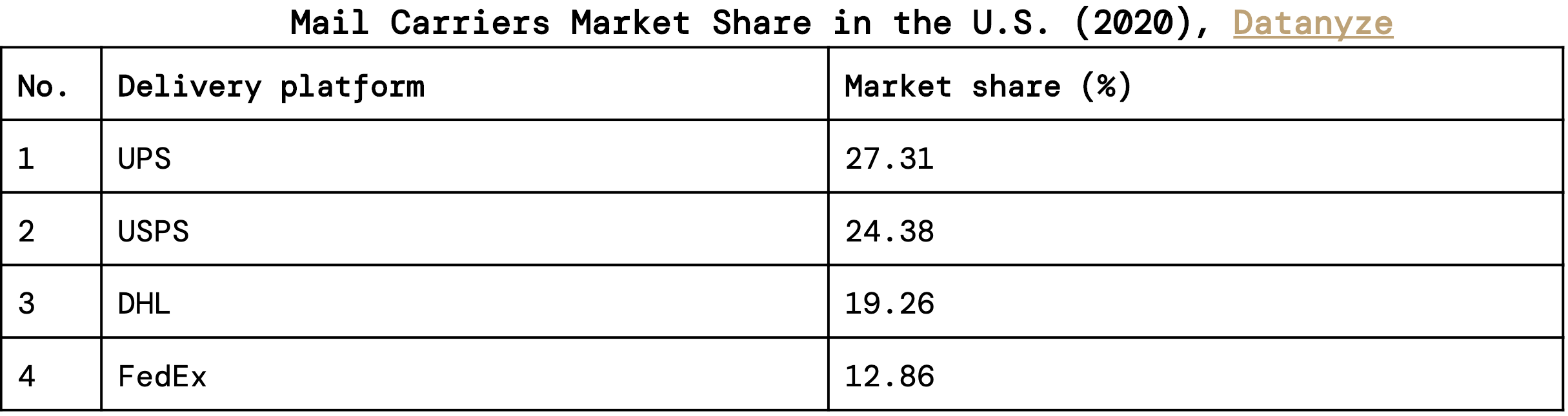 Mail carriers (UPS, FEDEX, DHL, USPS, etc.)